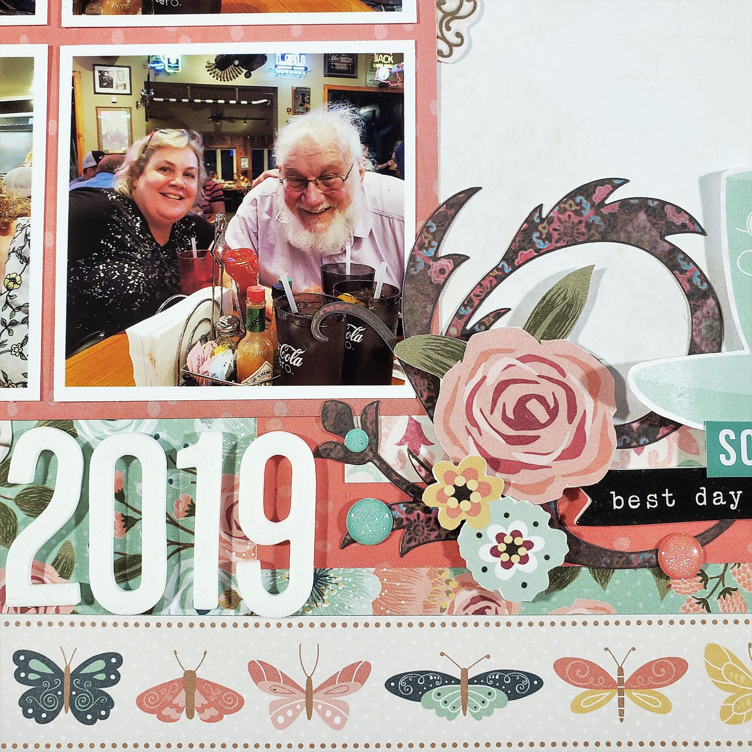 I created this layout for the Cherry on Top “Color and Shape” Challenge for June 2019. This challenge required the use of at least 3 colors from the color palette and one or more flourishes on your layout.
