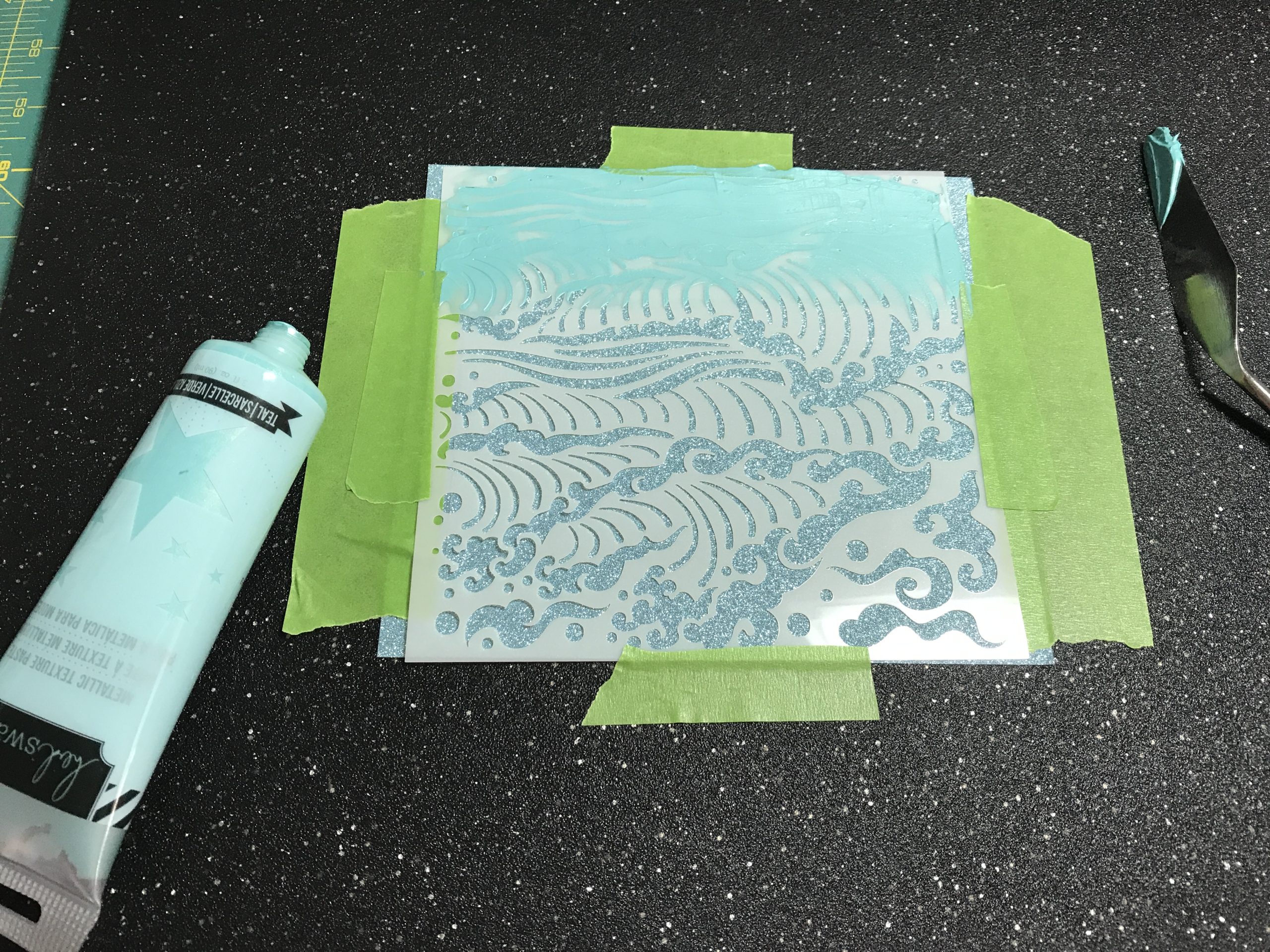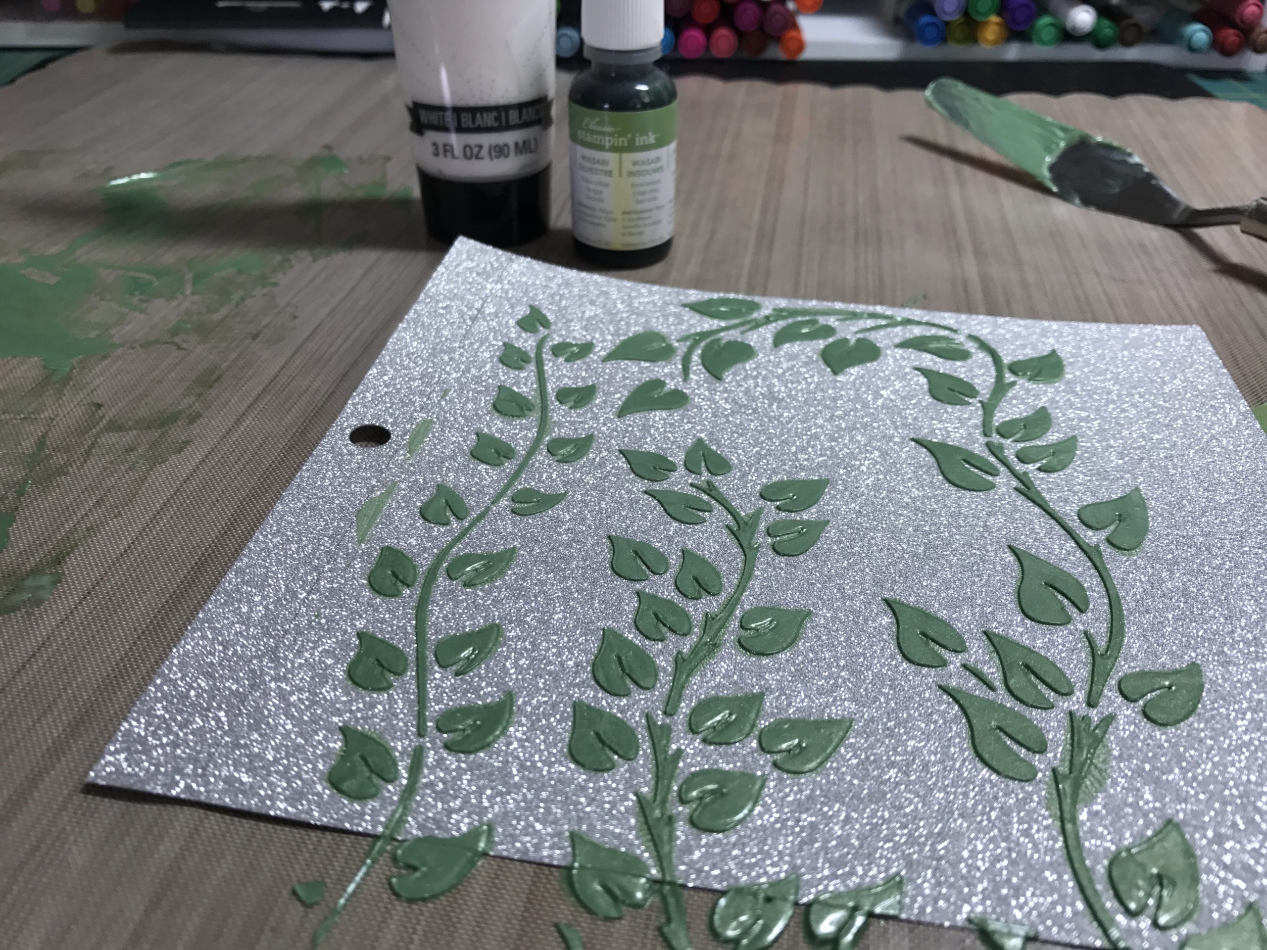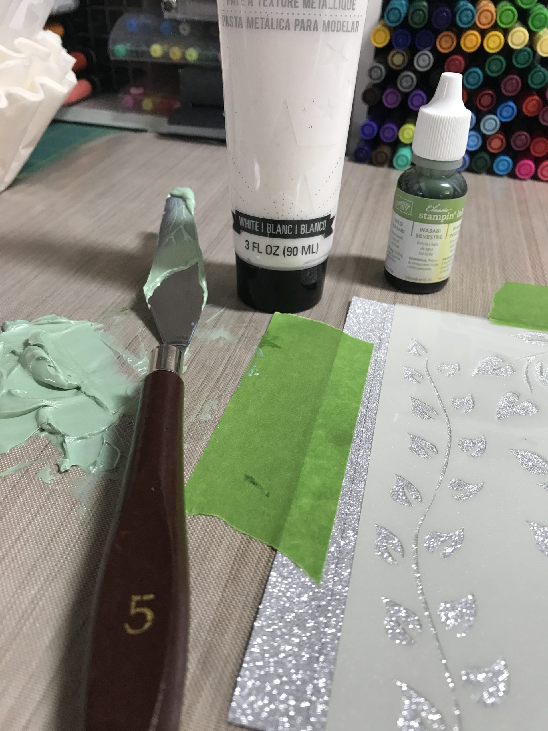 Day 5 in the Sparkle & Shine class is all about techniques with Paste and Mousse. I used some of my stencils and my paste that I’ve had in my stash for many years. It’s really been a lot of fun to get to learn new techniques. One of my favorites was using texture paste on glitter cardstock. I used 3 different glitter cardstocks to create 3 very different looks.