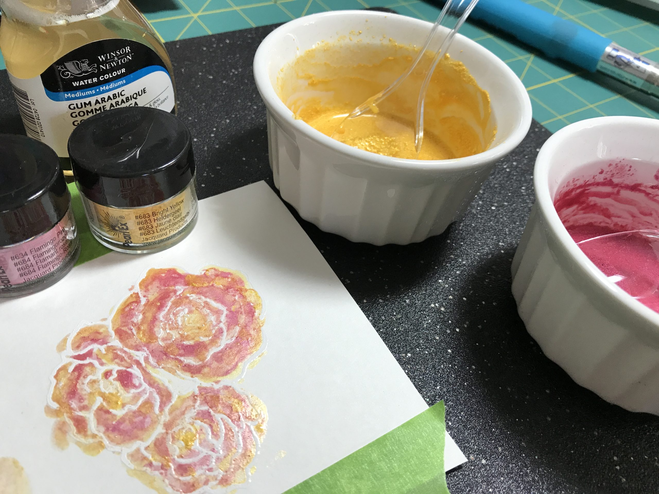 Once I received my Gum Arabic in the mail, I was able to move on to some projects using the Pearl Ex. It was so much fun to create inks using the Pearl Ex and the Gum Arabic and the results were breathtaking. I’m super happy that I was finally able to use my Pearl Ex to create something that I’m proud to show off.